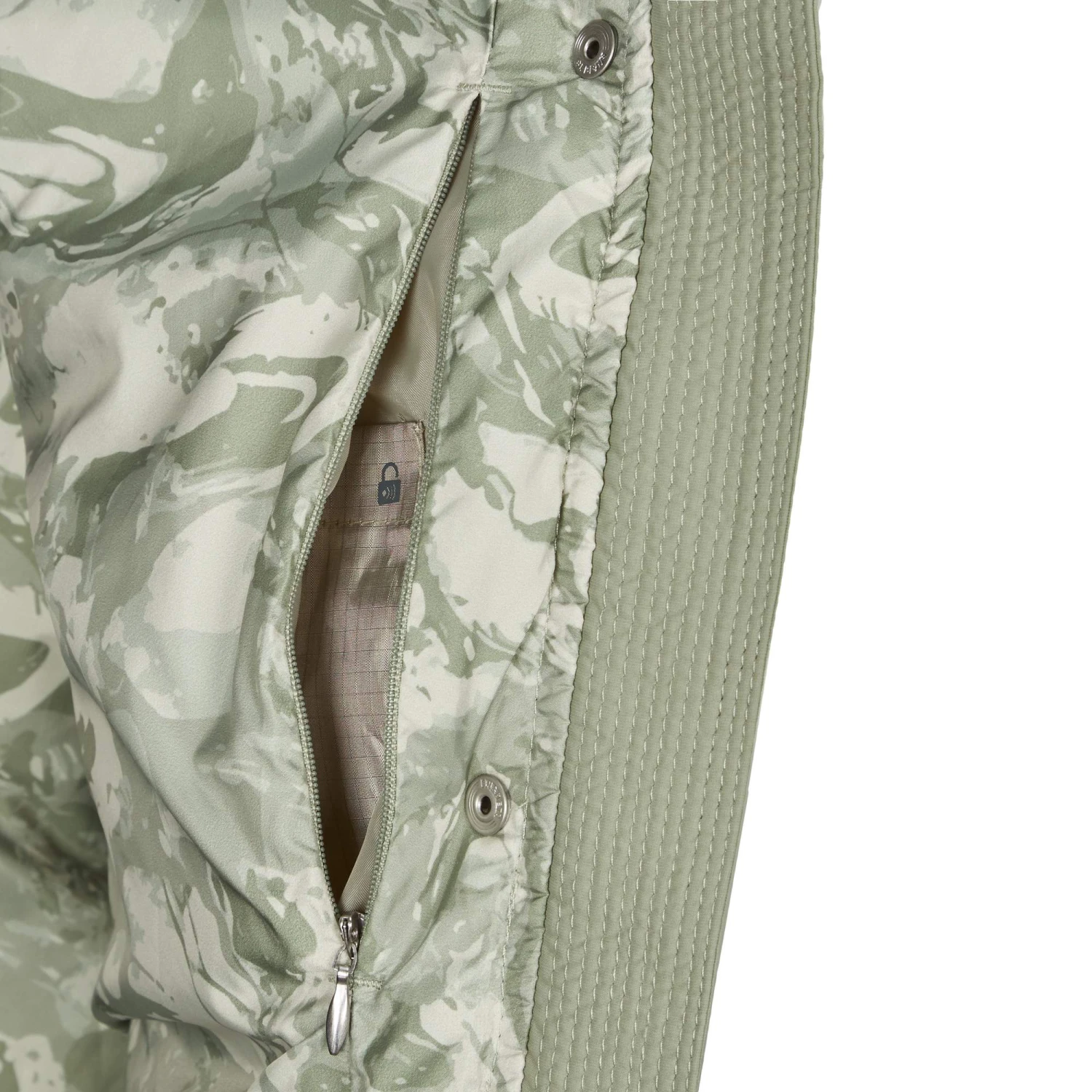 Der hohe Kragen und die Kapuze der isolierten Jacke spenden eine extra Portion Wärme. Die Ärmelbündchen sind mit einem Gummizugversehen. Der Saum verfügt über einen Schnürzug, damit kalten Wind einhalt geboten wird. Auch Datendiebe müssen draußen bleiben. Die im Inneren verborgene RFID-Tasche verhindert nämlich das Auslesen deiner Chipkarten.