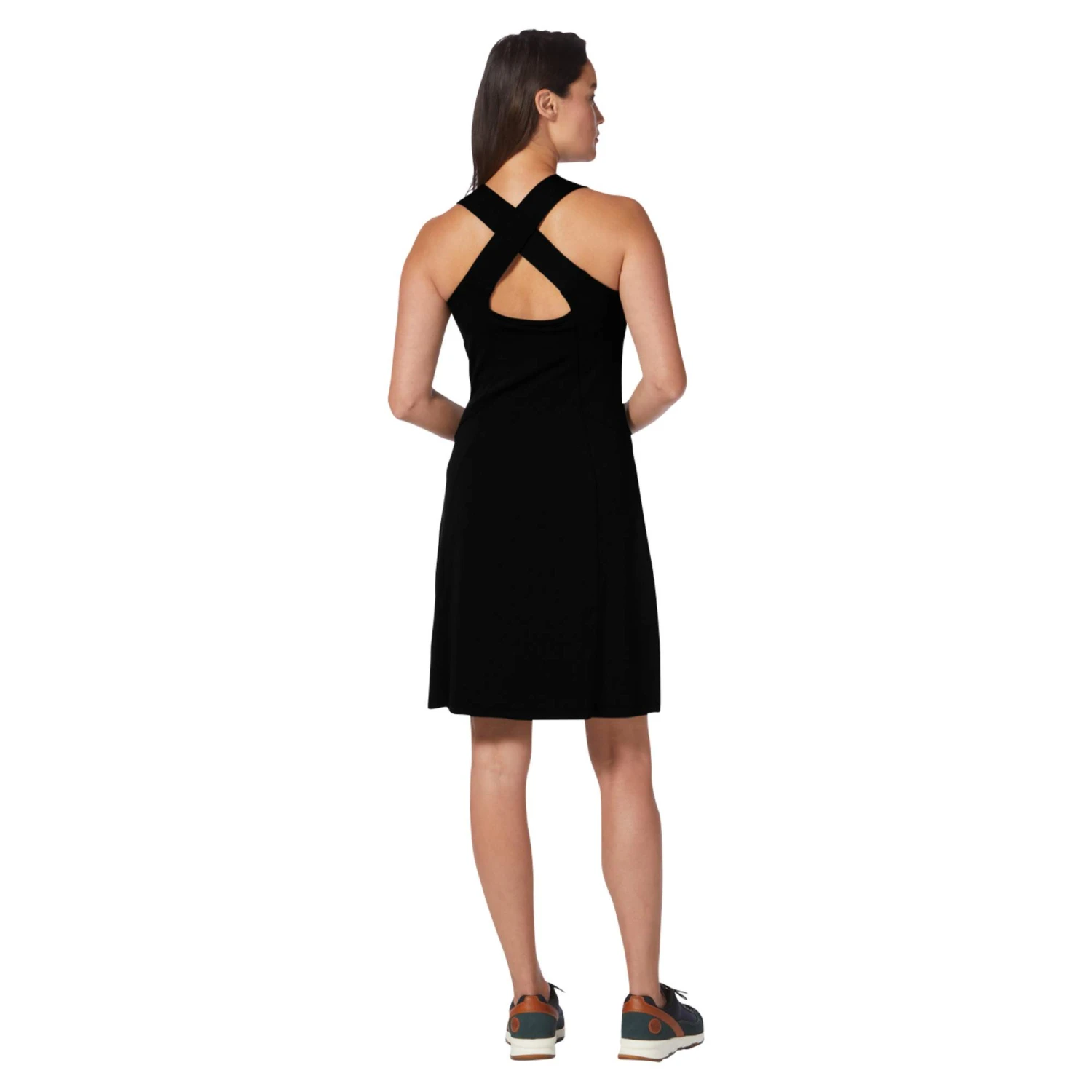 Der Elasthananteil des Backcountry Pro Dress gibt dem Material Stretchfähigkeit und gewährt dir Bewegungsfreiheit sowie Komfort. Die breiten Träger sind hinten gekreuzt und verleihen dem schlichten Kleid eine reizvolle Note. Das Material aus Recycling-Polyester fällt fließend und ist schön luftig sowie schnelltrocknend. Das beschert dir auch bei Wärme stets ein tolles Tragegefühl.